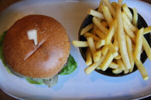 Traditional options are never forgotten, either. The Fish & Chips showcases locally sourced cod in a crisp real ale batter with hand-cut chips and homemade tartare, while the Bell Burger stacks juicy beef with chorizo jam, cheese, and French fries for a tower of flavour.