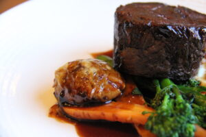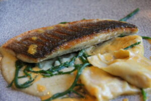 For something more substantial, the à la carte menu balances British classics with creativity. The Crispy Skin Sea Bass Fillet offers a satisfying crunch with buttery new potatoes, a velvety fennel purée, and delicate crab-filled tortellini, a clever twist on seafood. Meat lovers might choose the Slow Braised Feather Blade of Beef, meltingly tender and served with celeriac purée and herb & blue cheese dumplings.